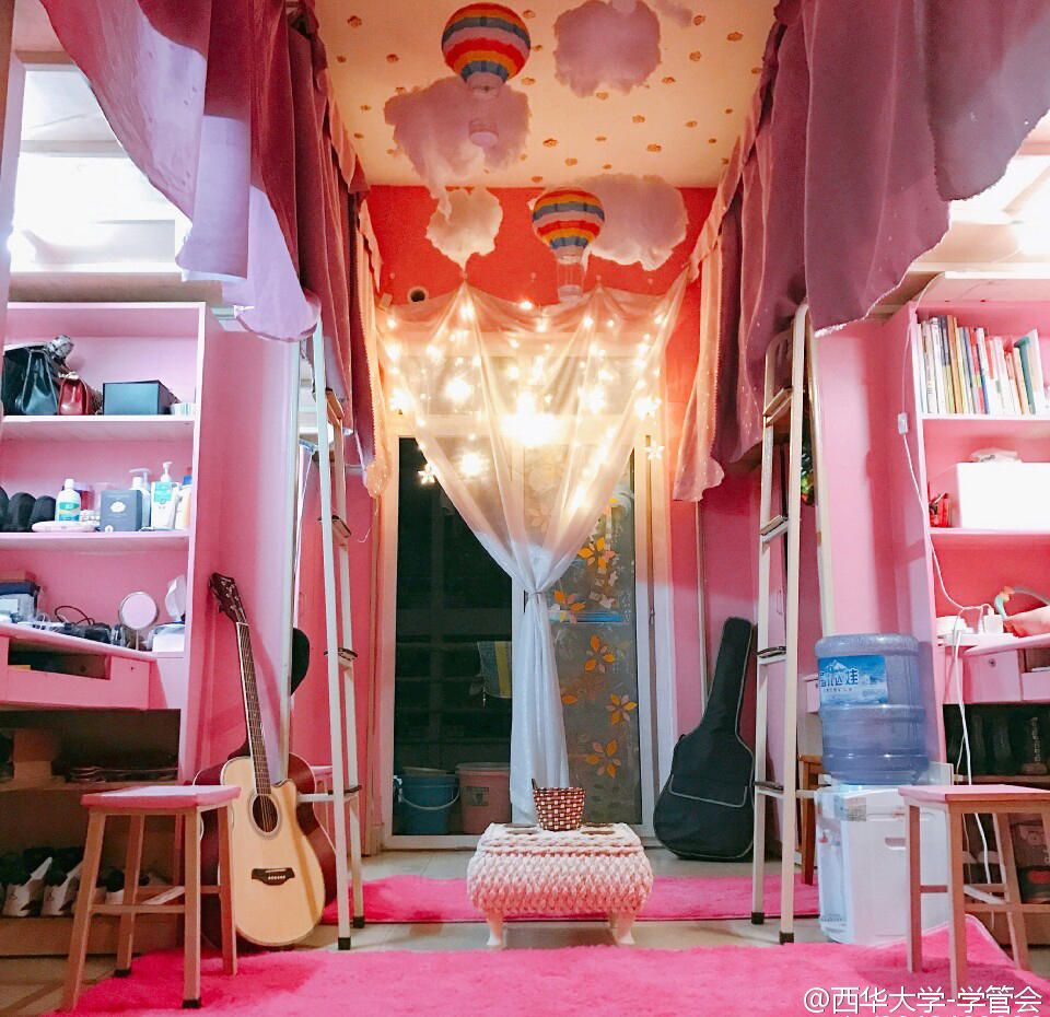一周前,西華大學(xué)舉辦了一場(chǎng)“美寢大賽”,其中一間參賽的女生宿舍因其粉嫩的格調(diào)、精致的裝飾,堪稱(chēng)“公主房”