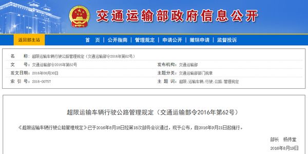 2016年9月21日,《超限運(yùn)輸車(chē)輛行駛公路管理規(guī)定》正式實(shí)行,并規(guī)定有以下情形之一的貨運(yùn)車(chē)輛即為超限運(yùn)輸車(chē)輛。