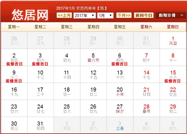 2018年1月裝修吉日_2017年1月裝修黃道吉日一覽表
