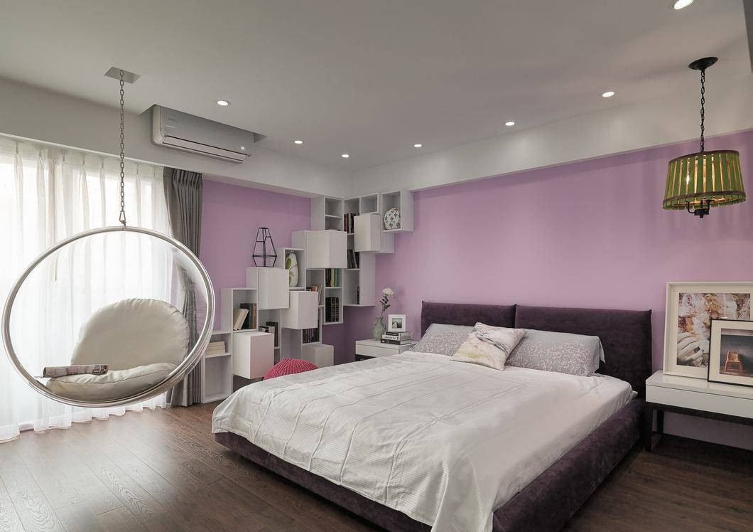浪漫氣息里,格子柜體沿墻串場(chǎng)入貓?zhí)_(tái)機(jī)能,即使是睡眠時(shí)光,也可以讓女主人恣意的與愛貓互動(dòng)。