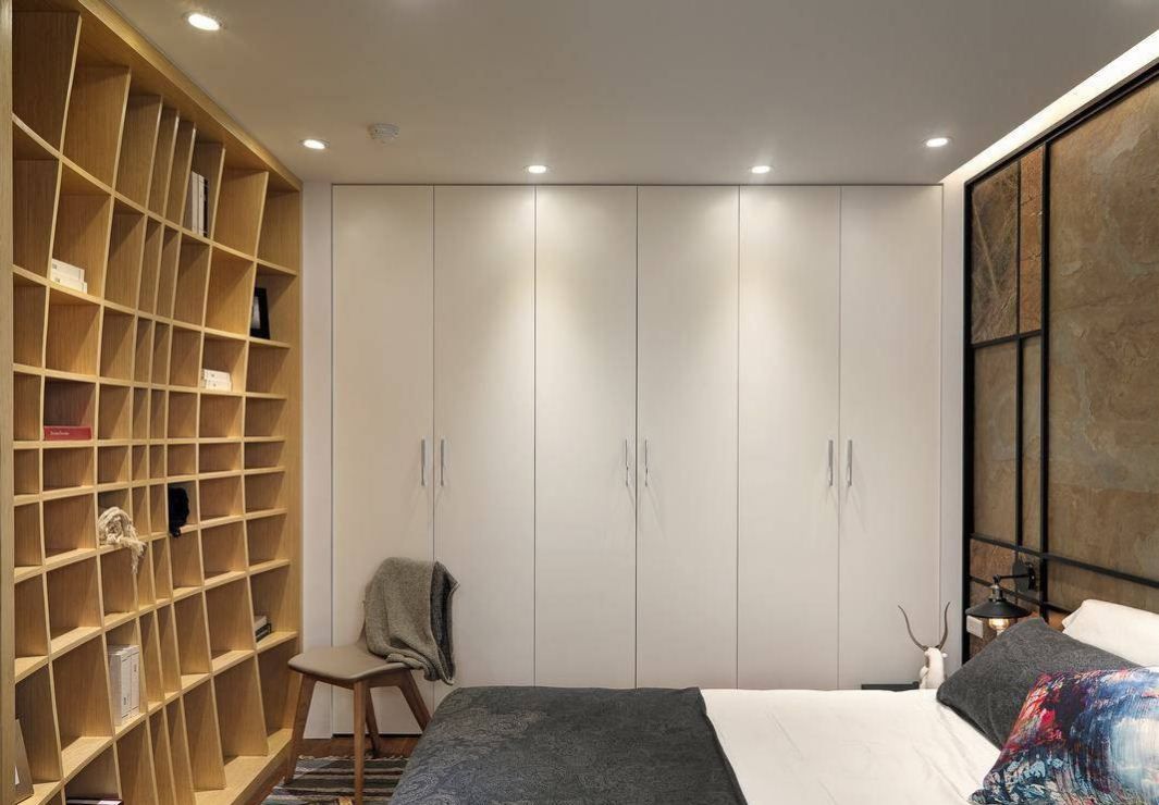 球形概念發(fā)展的書墻設(shè)計(jì),搭配上陶烤質(zhì)感衣柜,前衛(wèi)著私密體驗(yàn)。