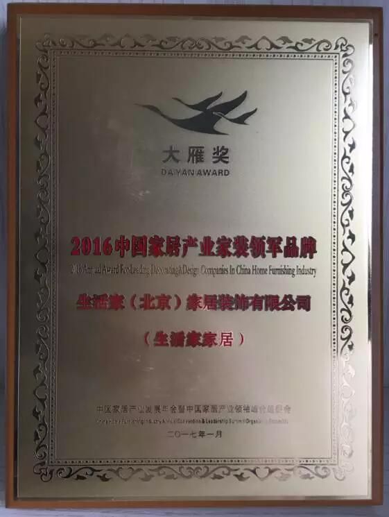 導讀:生活家榮獲“大雁獎”2016中國家居產業(yè)家裝領軍品牌。