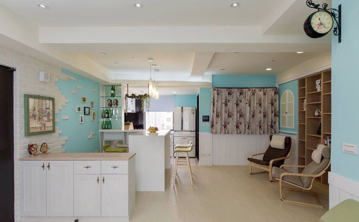 利用屋主喜愛(ài)的藍(lán)與白色為空間主色,營(yíng)造出如地中海的海灣休閑感。