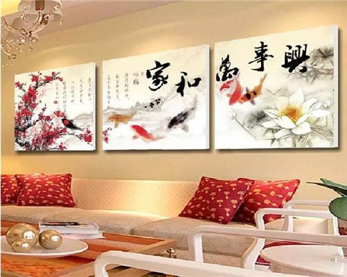 其次,從家居環(huán)境心理因素的角度來(lái)講,要選擇和氣生財(cái),和諧平穩(wěn)的掛畫。