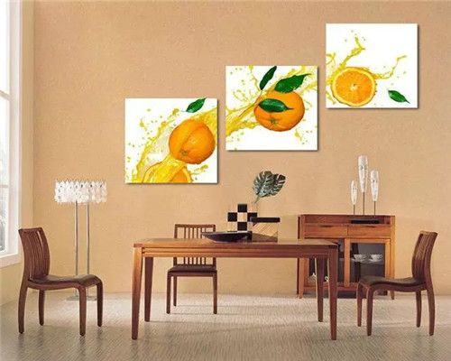 餐廳是進(jìn)餐的場(chǎng)所,在掛畫的色彩和圖案方面,應(yīng)清爽、柔和、恬靜、新鮮、畫面能勾引人的食欲,盡量體現(xiàn)一種“食欲大增”、“意猶未盡”的氛圍。