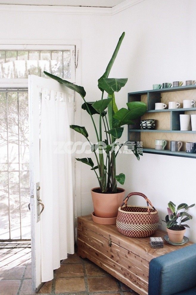 如今大多數(shù)人都住在高層小區(qū)住宅樓里,不似從前擁有自己的院子。那么門(mén)內(nèi)的世界總可以自己支配吧,進(jìn)門(mén)處,實(shí)木的鞋柜和純白墻壁,都為綠植做好了準(zhǔn)備。高大的芭蕉葉盆栽擺放在這里,顯得恰到好處。