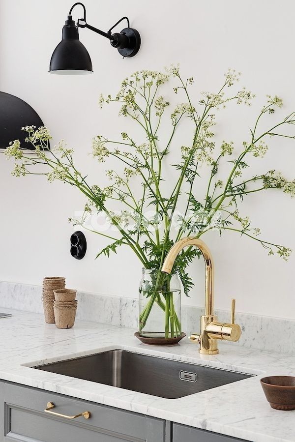 廚房里的綠植,自然要符合廚房的身份,隨手拿到的蔬菜也可以放在水槽邊任其生長(zhǎng),當(dāng)你洗手作羹湯時(shí),看到眼前輕靈的綠意,也會(huì)忍不住會(huì)心一笑吧。