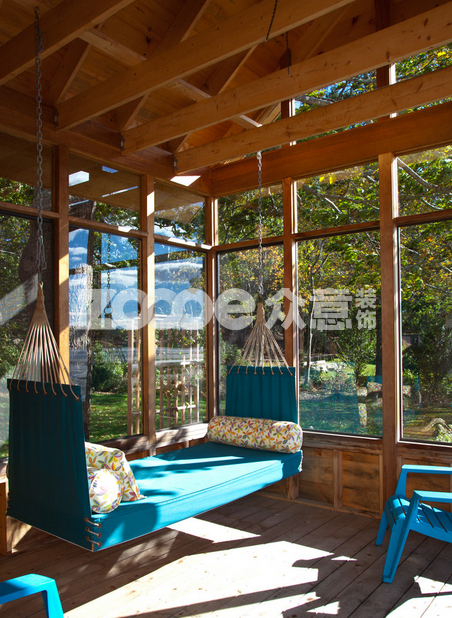 雖然你的城市沒(méi)辦法看到海,但是卻不能阻止你對(duì)大海的向往,藍(lán)色大海、椰子樹下的吊床、柔軟的海沙......這些熟悉的大海元素同樣可以運(yùn)用到你的陽(yáng)臺(tái)里。一張結(jié)實(shí)的海藍(lán)色吊床、腳感舒適的實(shí)木地板、玻璃窗外滿眼的綠色。其實(shí)并不比無(wú)敵海景差,對(duì)嗎?