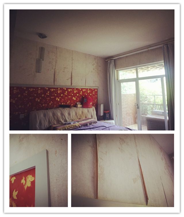 只是原先貼的墻紙已經(jīng)卷邊起層