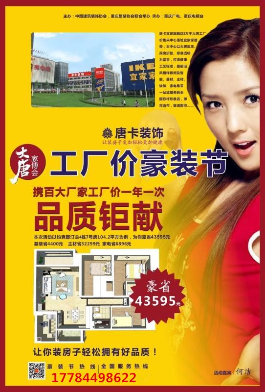 最大規(guī)?;顒?,最強(qiáng)設(shè)計陣容,最給力明星助陣,最低價,高品質(zhì)商品.空調(diào)免費(fèi)拿,迪拜免費(fèi)游,寶馬免費(fèi)開,當(dāng)紅明星演唱會免費(fèi)聽,一線品質(zhì)裝修,建材,家具,家電、價格沒有最低,只有更低!全場嗨翻到爆!是的,就是這么任性,你沒有看錯,這一切盡在大唐家博會。炎炎夏日,讓你清涼一“夏”.特權(quán)卡限量發(fā)送中,預(yù)知活動詳情請撥打聯(lián)系?:17784498622 這是一通讓你裝修省幾萬的神奇電話。不信你撥打試試