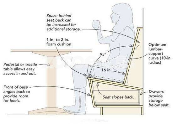 考慮到人體舒適度,卡座沙發(fā)的坐面與沙發(fā)的靠背之間的角度盡量保持在95度,這種狀態(tài)下的人體是向后傾斜的,會(huì)處于一種舒適的狀態(tài)。但是在國內(nèi)并不都多見。
