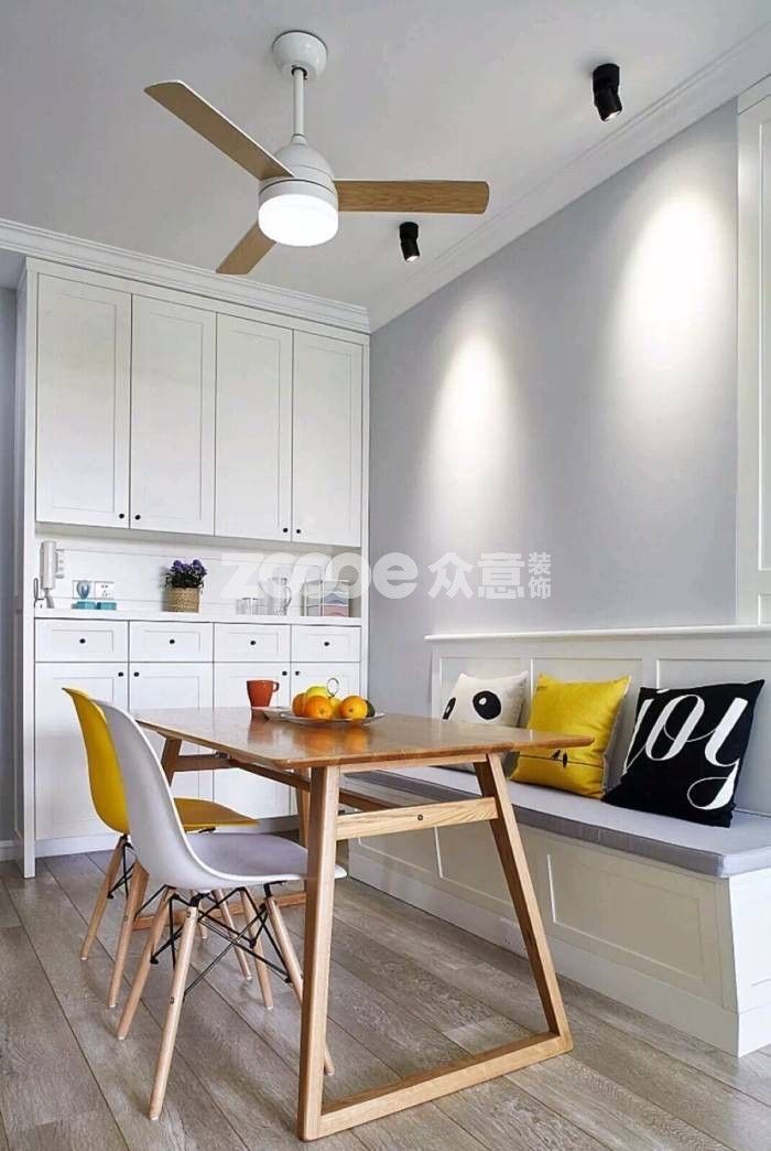 對于小居室,一物多用的理念就顯得尤為重要了。小小的卡座,如果只做餐桌或休閑區(qū),太過于奢侈了,功能區(qū)的集合才能發(fā)揮它的最大作用。用餐時(shí)它是不折不扣的餐桌,朋友來時(shí)它是舒適的會(huì)客區(qū),無聊時(shí)它是家人的休閑區(qū)......