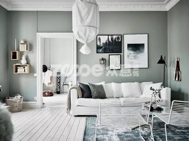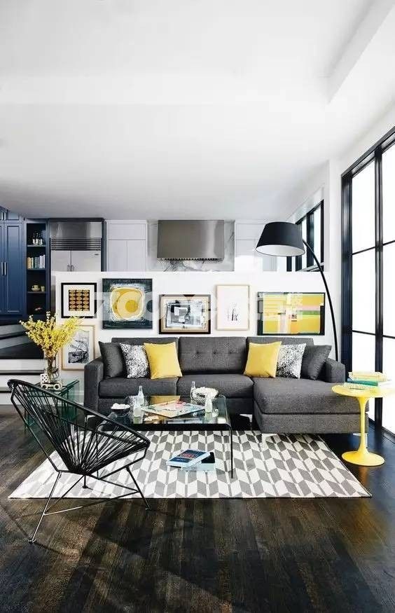 黑白灰在色彩體系中可以視為“消失狀態(tài)”,墻色、天花和大面積軟裝選擇黑白灰作為大基底,也就相當于創(chuàng)造了一個空白的畫布,這時候你再往里面填充任何東西都錯不到哪里去。