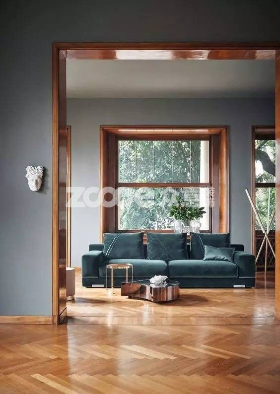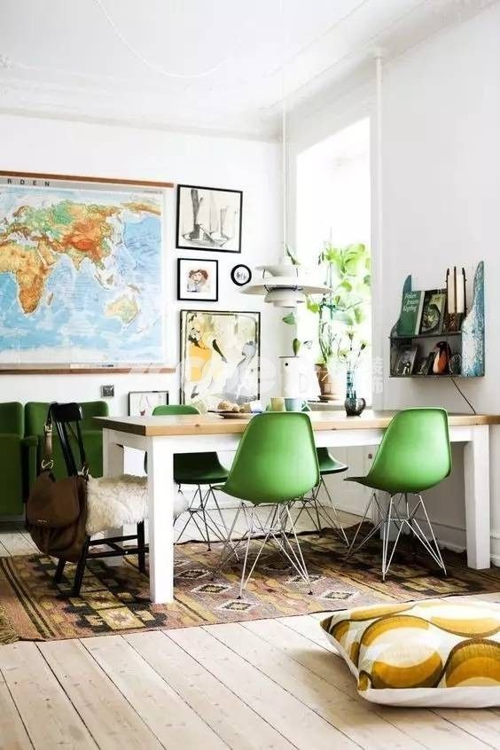 ▲另外一個例子,今年的流行色草綠,運用在家居環(huán)境中是不是很有腔調?墻面、框畫、抱枕、地毯都維持了同一個色彩體系,才能達成整體氛圍清新又平和的效果。