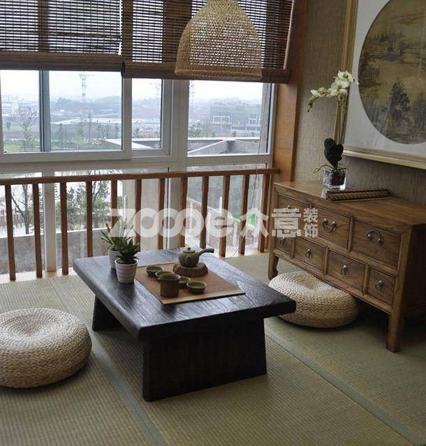 飄窗總是獨(dú)得大自然的恩賜,有陽光與微風(fēng)相伴。不用單獨(dú)再做地臺(tái),在這樣的一個(gè)位置,放置一張草席,兩三個(gè)蒲團(tuán),一個(gè)茶幾,就是一個(gè)榻榻米。