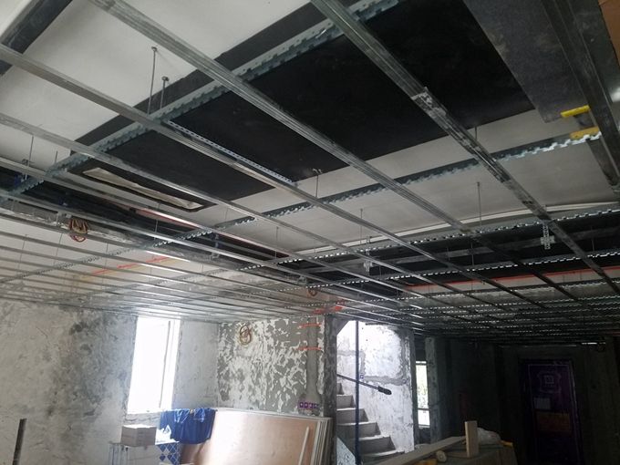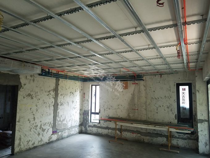 天古渝派精工·輕鋼龍骨吊頂工藝:平頂及直線造型頂。主龍骨、副龍骨、邊龍骨全部采用鍍鋅輕鋼材質,使用沉頭螺絲錨固。主龍骨要求間距900㎜,次龍骨要求間距400㎜ 。