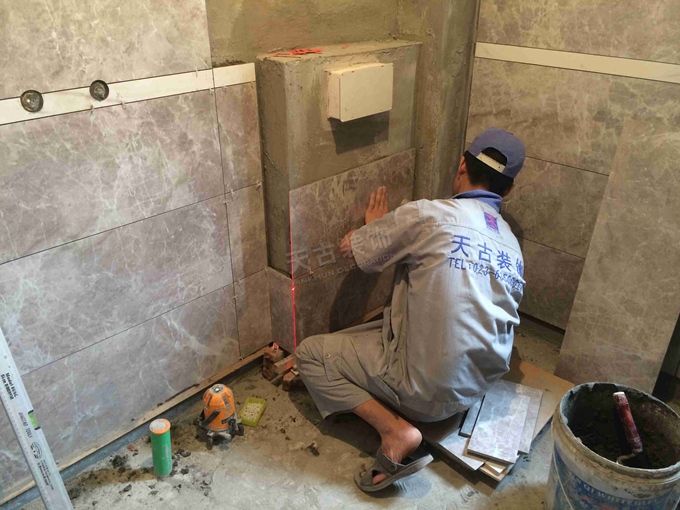 墻地面防水一起施工后,要求地面做砂漿保護層。 天古渝派精工·墻地防水搭接工藝:先墻防再地防,并延伸至地面10cm,貼墻磚并留墻角磚不貼,做地面防水時延伸至預留墻角磚上邊緣,避免了墻磚施工中對地面防水層的破壞。