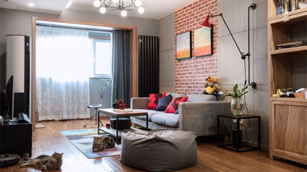 裸露的墻磚、原木色的地板家具,帶來工業(yè)風(fēng)的力量感,讓人在室內(nèi)忍不住運(yùn)動(dòng)起來,制造出溫暖的感覺。