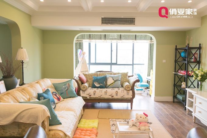 客廳設(shè)計(jì)就是一場設(shè)計(jì)元素的碰撞,新綠墻漆碰撞美式硬裝,效果清新帶點(diǎn)小美情懷,讓整個(gè)客廳顯得格外的華麗、高雅。