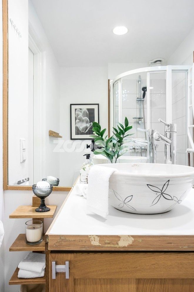 這點,絕對是沒有對外窗的衛(wèi)生間,一定要做到的事!想想,沒有對外窗,濕氣已經(jīng)夠重了,還把水氣濕氣搞得整間都是,根本就干不了阿!如果一開始就沒有規(guī)劃干濕分離了,浴簾也是個補救的好方法,起碼還是可以擋掉一些四濺的水花。