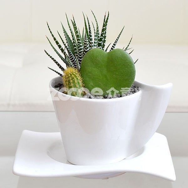 閑置的帶有圖案或者素色的茶杯、馬克杯,也都是種植花草的器皿,小小的一杯綠色,能給你帶來沁心的感官享受。