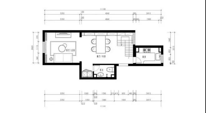 改造前:客廳和餐廳沒有明確分區(qū),餐桌被擠在了樓梯下,局促而擁擠,進(jìn)出吃飯都得低頭,容易磕碰到頭部。并且厚重的樓梯,擋住了客廳唯一的采光源,在不開燈的情況下,光線不足,房間昏暗。