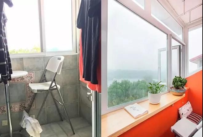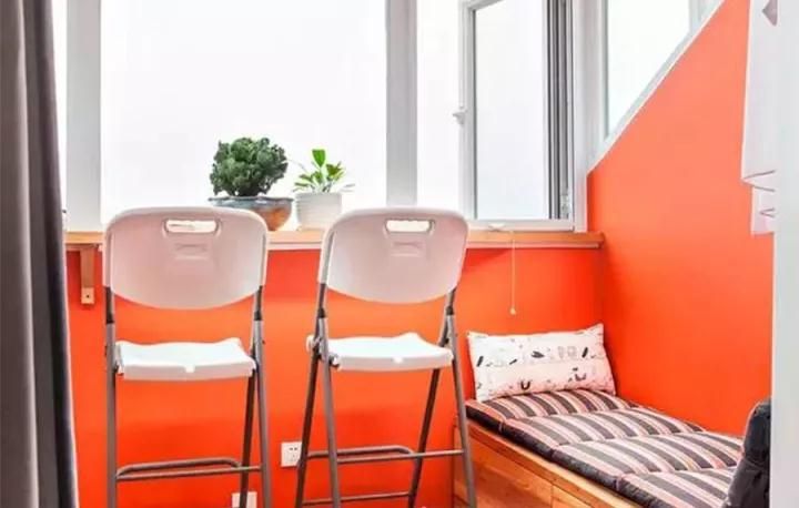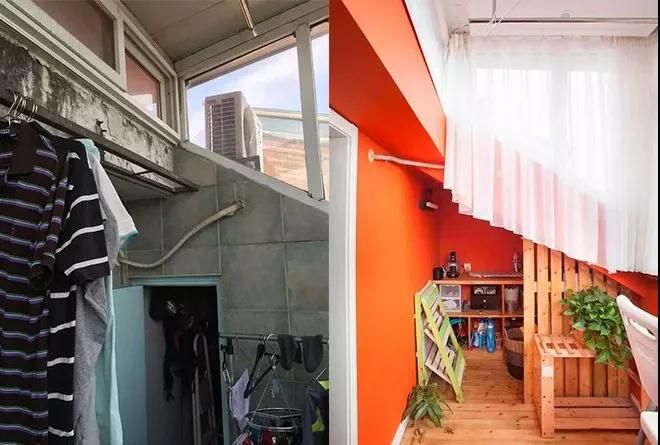 陽臺(tái)重新翻新了一邊,這時(shí)改頭換面的變化,以前破敗的墻面現(xiàn)在換成了活力十足的橙色瓷磚飾面,地板采用了防腐木,右側(cè)設(shè)計(jì)單獨(dú)的儲(chǔ)物區(qū),方便收納洗衣設(shè)備,并配備了榻榻米,閑來無事的時(shí)候躺在上面曬曬太陽,簡直再舒服不過了!