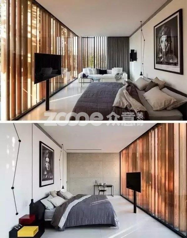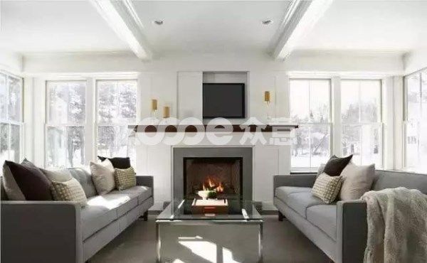將電視放在一個封閉式空間中而不是裸露在外,電視位置的顏色也與周邊融合起來,顯得渾然一體,使得空間更具有完整性與一致性。