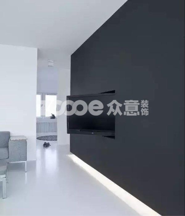 這種漂亮的背景墻通常被拉伸開來,有的干脆選擇和電視屏幕一樣的黑色,讓這一面墻乍看之下沒有任何瑕疵,不失為一種整體提高空間格調(diào)的手法。