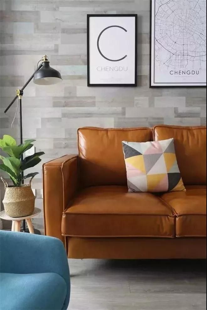 在單品的選擇上以突出質(zhì)感為主,淺棕色小牛皮沙發(fā)、藤編花盆制品,富有現(xiàn)在氣息的掛畫加高架落地?zé)?,?gòu)成一幅和諧美好的畫面。