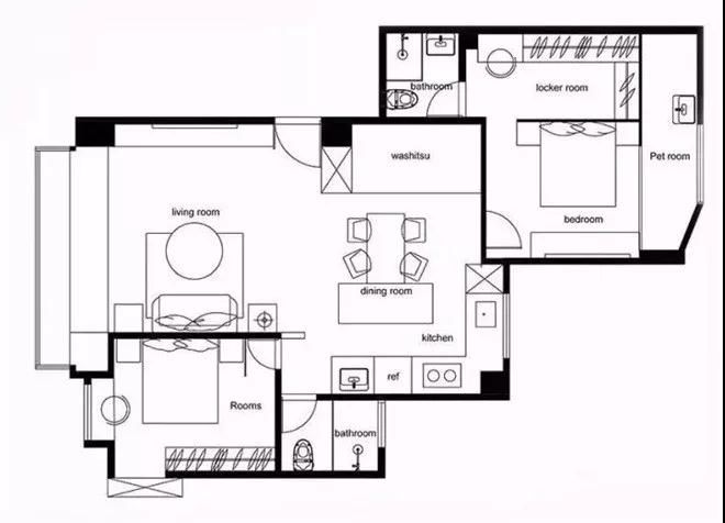 開放式空間設(shè)計,基本上省去了門,將兩個空間連成一個空間,瞬間讓空間擴(kuò)大一倍。
