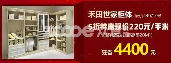 禾田世家柜體,原價(jià)每平米440元,5折特惠現(xiàn)價(jià)每平米220元,狂省4400元。