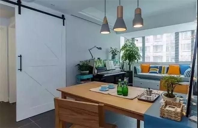 ▲餐廳靠窗的區(qū)域,做成了休閑區(qū)。藍(lán)橙色多彩抱枕隨意擺放,跳躍的顏色,為小窩增添一抹暖意,卡座旁擺上一架鋼琴,方便女主人練琴。