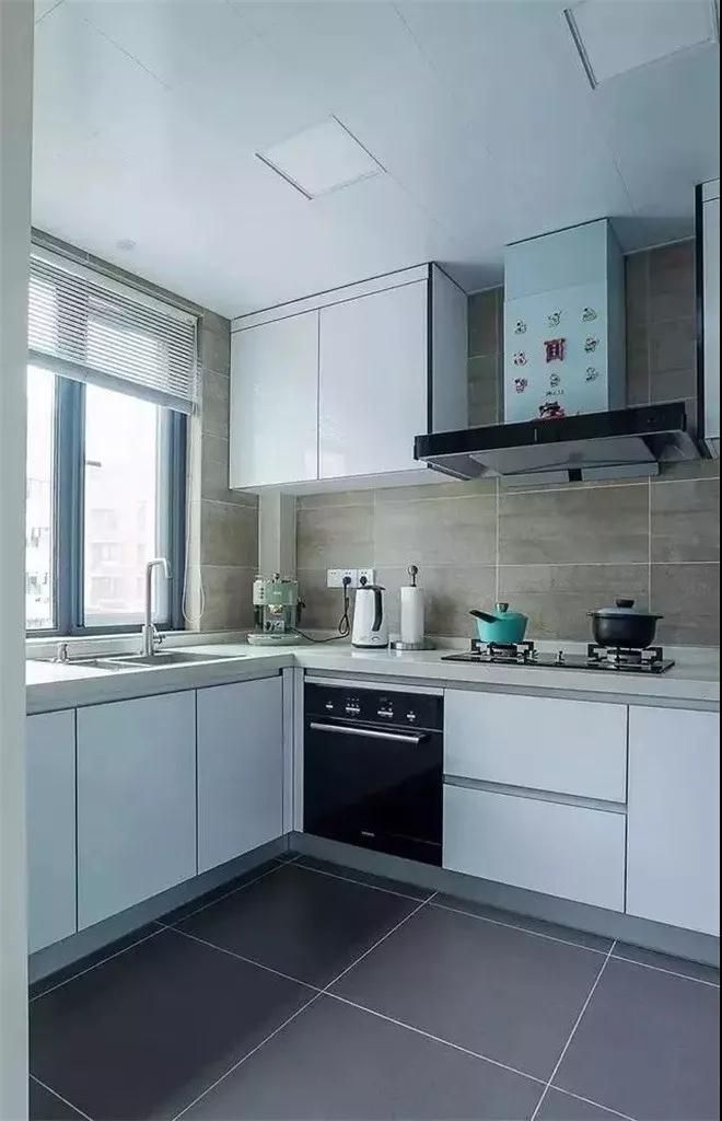 ▲廚房給人的感覺(jué),就是,大方,潔凈,明亮。黑白灰可謂是經(jīng)典搭配,結(jié)合仿木紋墻磚,感覺(jué)整個(gè)空間都設(shè)計(jì)得特別精致。