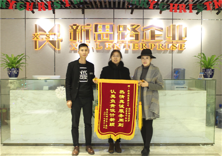 同時,桑老師還為市場部葉主管和設(shè)計師夏呈夢送上一面書寫著“熱情真誠,服務(wù)周到,認(rèn)真負(fù)責(zé),設(shè)計新穎”的大紅錦旗。