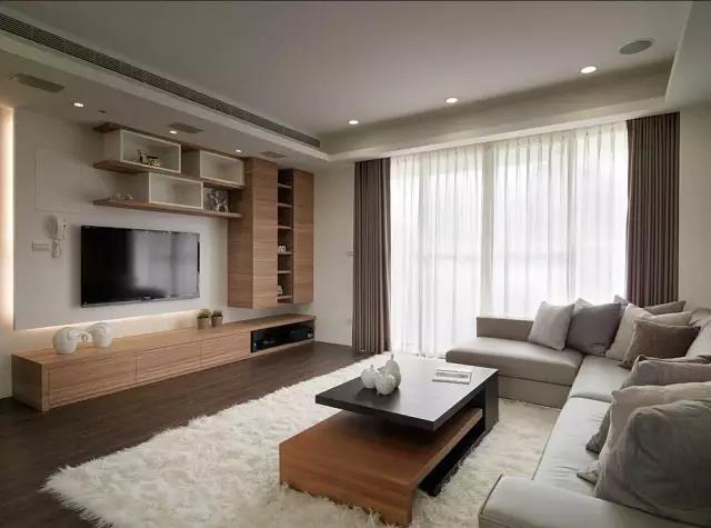 客廳的設計在于電視背景墻,打造獨特造型的儲物柜,用質感強烈的實木材質,更加突出品味,白色的絨毛地毯,與組合式的茶幾,展現(xiàn)出舒適的氛圍。