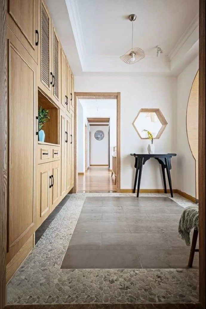3、門口最好安排一個放雜物的柜子,可以放在鞋柜的上面。把常用的東西如傘、包、剪刀、零錢、常吃的藥等放在那里,這樣就很方便了。