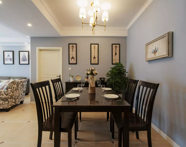 本案為簡約的小美式之作,業(yè)主不喜歡繁縟復(fù)雜的裝飾,所以設(shè)計(jì)師沒有在結(jié)構(gòu)和硬裝修上傾注過分的裝飾,反而靠沉穩(wěn)的涂料顏色和經(jīng)典的美式家具搭配質(zhì)感豐富的軟裝飾來營造充滿溫情的家庭港灣!