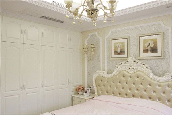 其次復(fù)雜的床頭可以很多業(yè)主覺得難以接受,但這又是歐式風(fēng)格里,必備的造型特點(diǎn),特別是對于一位22歲的小女生來說,公主夢每天都在發(fā)生。