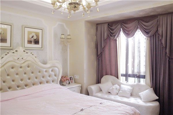 還有,我們再把目光轉(zhuǎn)向窗簾和燈具的造型上來,夢幻紫的窗簾配以重重帷幔,一個悠閑的周末時光里,睡到自然醒,拉開窗簾,讓陽光充滿房間的每一個角落。