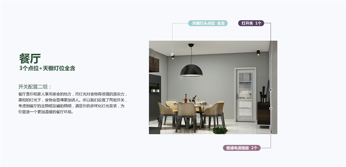 餐廳:3個(gè)點(diǎn)位+天棚燈位全含