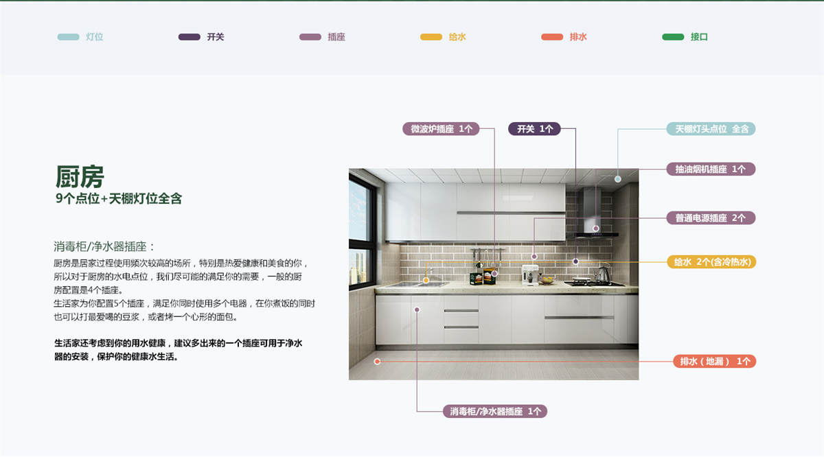 廚房:9個(gè)點(diǎn)位+天棚燈位全含