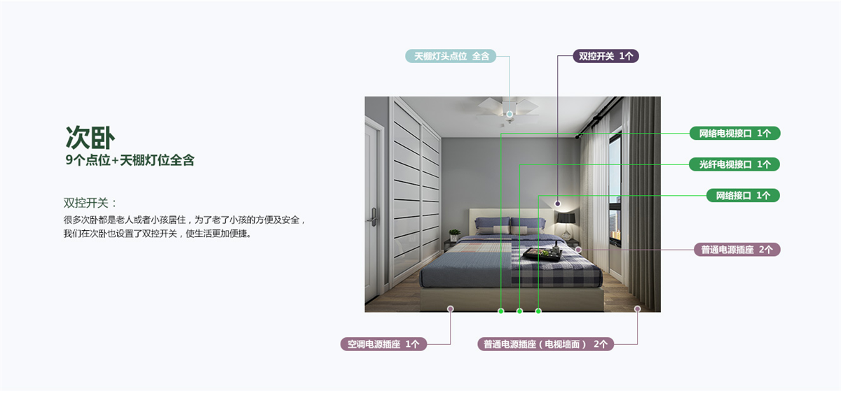 次臥:9個(gè)點(diǎn)位+天棚燈位全含