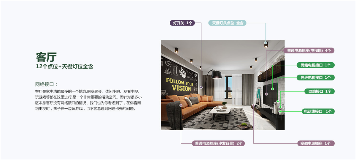 客廳基礎(chǔ)標(biāo)配點(diǎn)位:12個(gè)點(diǎn)位+天棚燈位全含