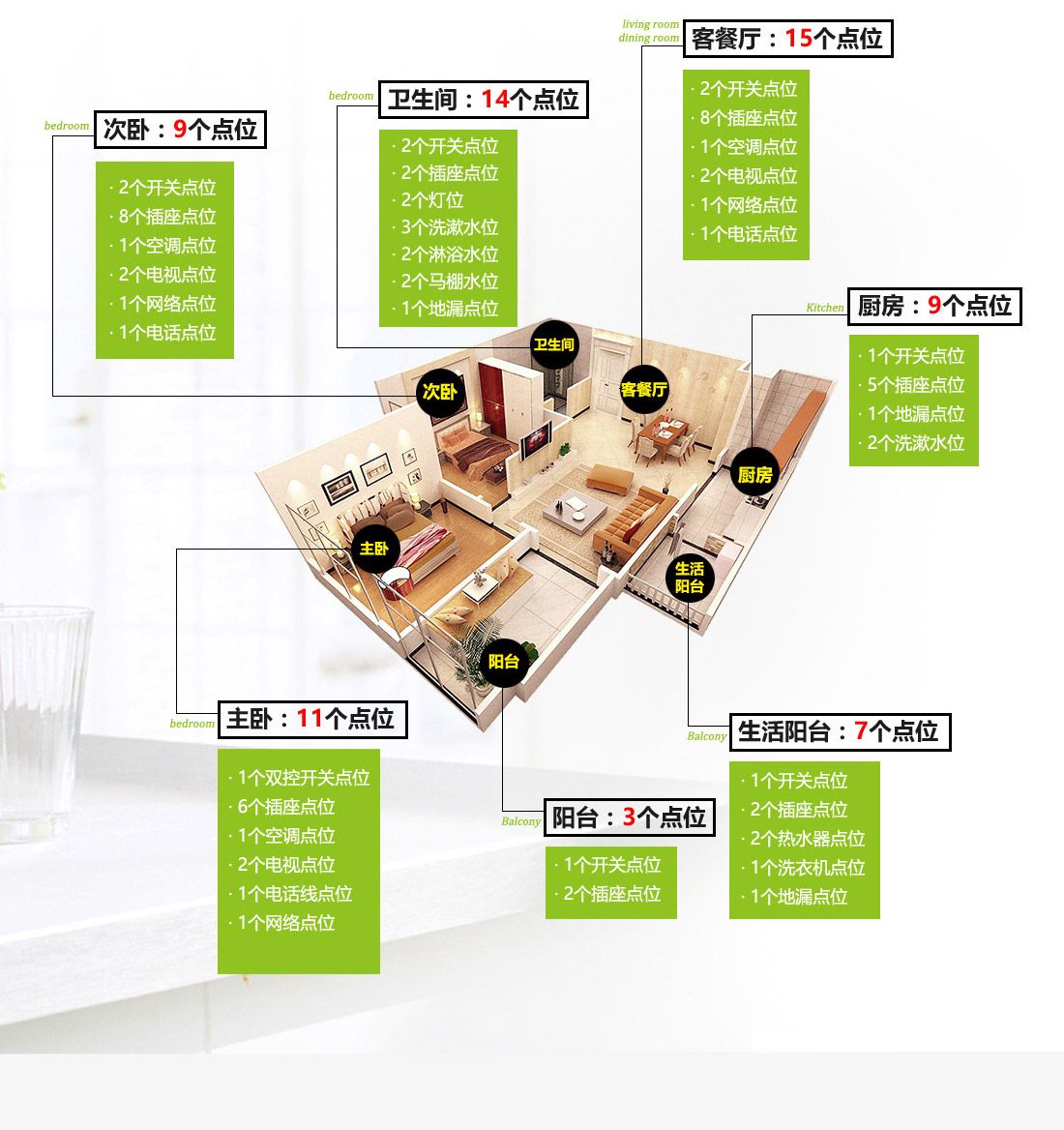 再來綜合的看一下全屋的水電點(diǎn)位布置情況: