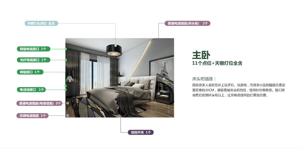 主臥:11個(gè)點(diǎn)位+天棚燈位全含