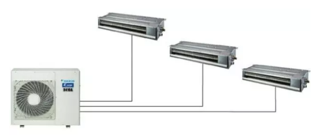 在外觀上,中央空調(diào)只需要一臺(tái)室外機(jī),即可連接多臺(tái)內(nèi)機(jī),又稱(chēng)為【一拖N】。例如,兩房?jī)蓮d的小戶(hù)型,需要三臺(tái)室內(nèi)機(jī),即一拖三。(不建議在廚房安裝,油煙大,容易影響運(yùn)行和使用壽命)