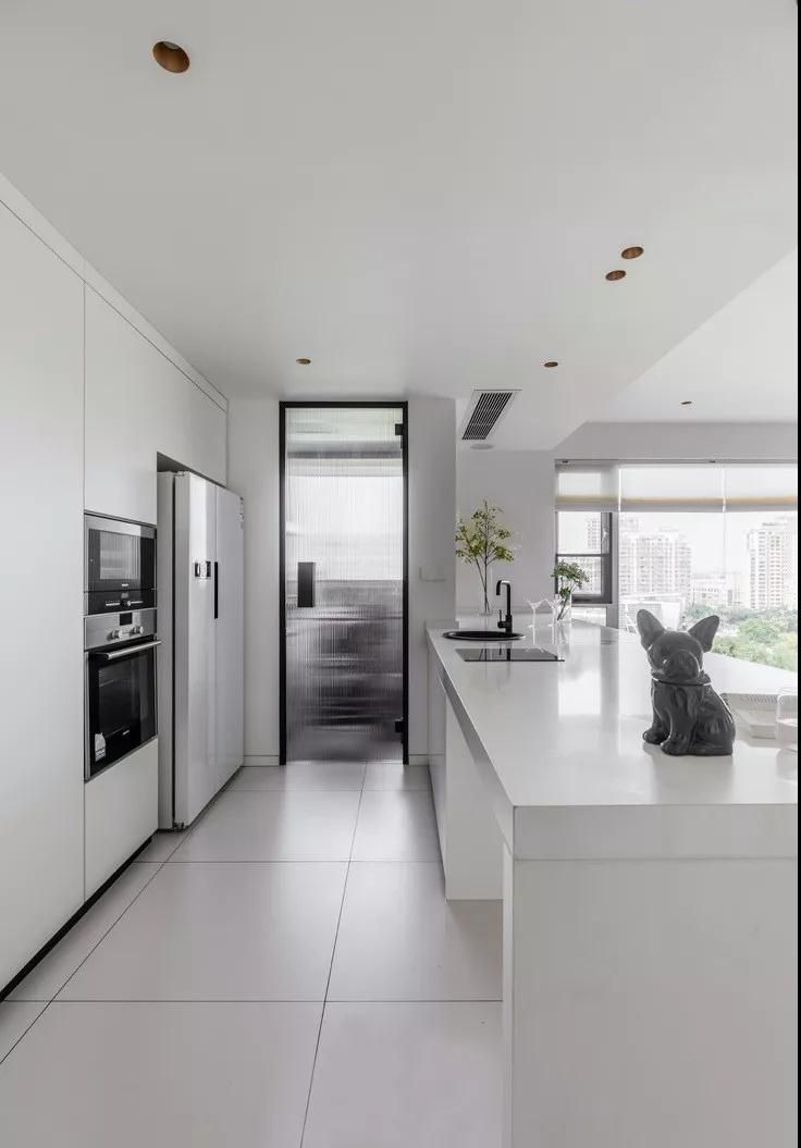 全吊頂在極簡(jiǎn)、北歐風(fēng)格中用的比較多,做全吊頂除了可以把電線、筒燈、燈帶等隱藏起來(lái),也便于安裝通頂大柜子,柜子的頂部能和天花板完全貼合。