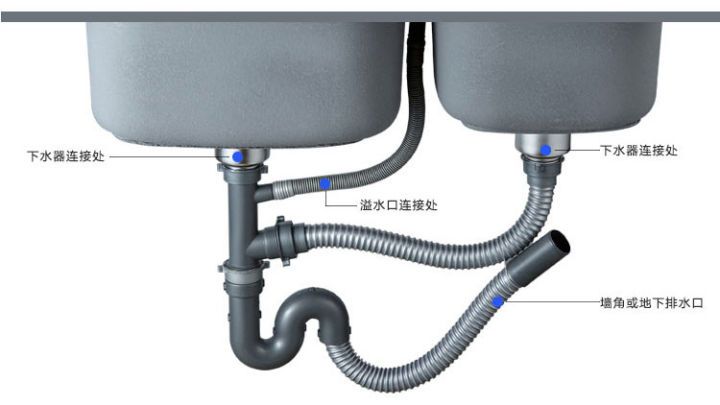 、 洗菜區(qū)電路規(guī)劃   水槽下方預(yù)留1個(gè)插座離地550mm,用于凈水器,如果安裝垃圾處理器則多預(yù)留一個(gè)。 凈水器安裝示意圖 注:反滲透凈水器出來的“廢水”還可以接入到衛(wèi)生間的水箱處,有興趣的朋友可以自己研究一下。 垃圾處理器安裝示意圖 可預(yù)留燈帶的插座在吊柜內(nèi)(離地1645) 切菜/炒菜區(qū)電路規(guī)劃 油煙機(jī)安裝高度建議 側(cè)吸式:870~920mm; 非側(cè)吸式:650~700mm。 擺放電器的臺(tái)面插座數(shù)量預(yù)留多點(diǎn),盡量帶開關(guān)。 水電管交叉時(shí)怎么處理?   如果水管在上,當(dāng)出現(xiàn)冷凝水,可能使電線受潮,出現(xiàn)短路、跳閘的情況(雖然概率非常低),所以建議水管在下。 走天的水電可以直接分層走線,電在上。 走地可以切開水管,安裝一個(gè)過橋彎繞下方,將電線靠在水管的上方。 深入探討   關(guān)于提高吊柜利用率的方法探討,通過加寬臺(tái)面,降低吊柜,可以在使用櫥柜的時(shí)候更加舒適,前提是需要廚房寬度足夠大能讓臺(tái)面延展到75mm,有得有失,看個(gè)人選擇。