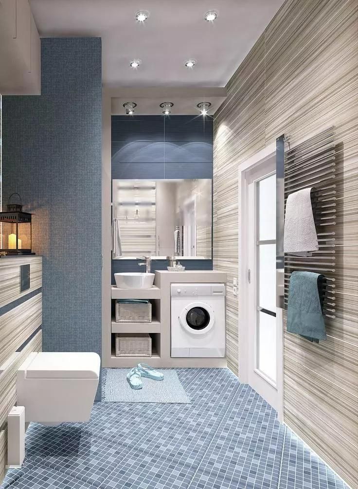洗漱臺下預(yù)留洗衣機(jī)的位置,不僅節(jié)約空間,也讓衛(wèi)生間顯得非常整齊。洗衣機(jī)在洗漱臺下,將水注入洗衣機(jī)中,也非常方便。